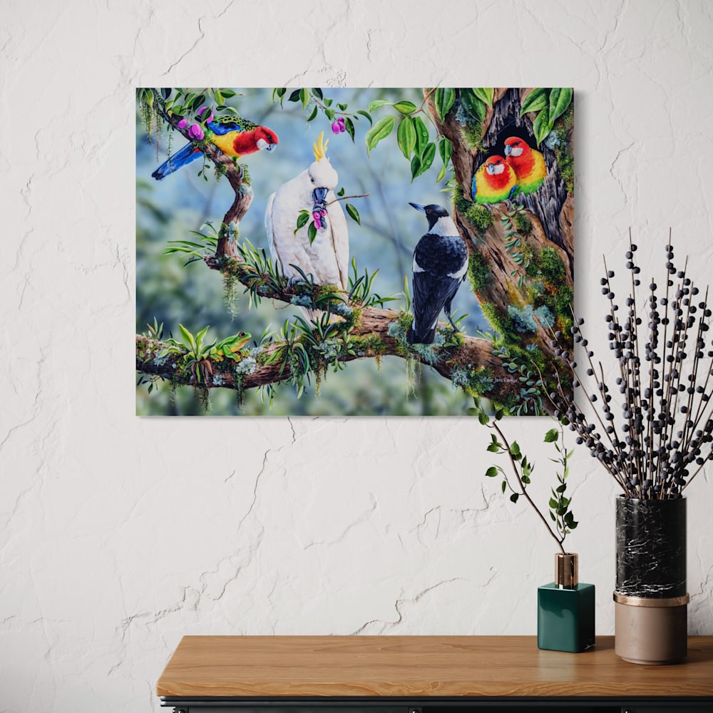 Explore our best-selling collection of wildlife-inspired artwork, featuring stunning artworks of some of Australia's vibrant birdlife. Each piece beautifully highlights the essence of our feathered friends in the outdoors, including: