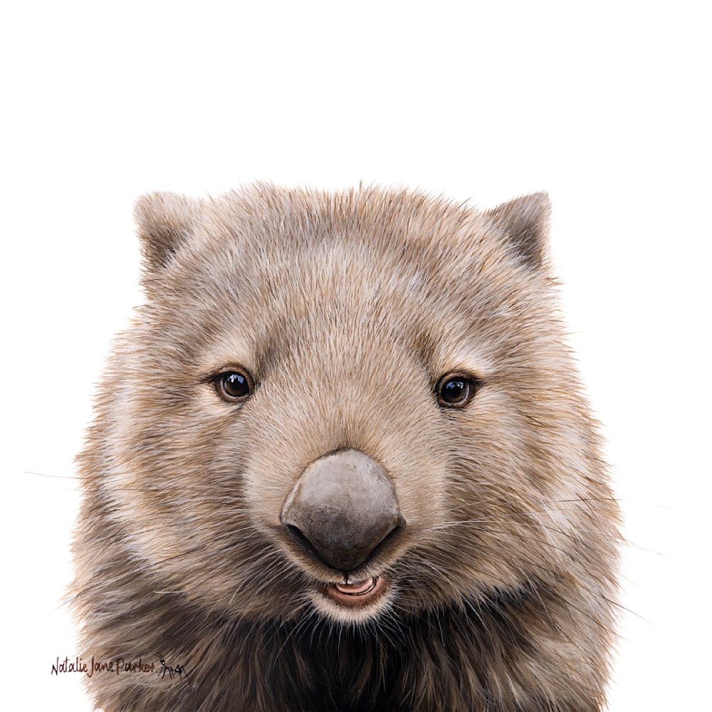 Art has an ability to bring us closer, to the wildlife around us through pieces like Natalie Jane Parkers depiction of a wombat that captures this special connection perfectly with its warm expression and intricate details that not only evoke admiration but also cultivate a greater love, for the beauty of nature.