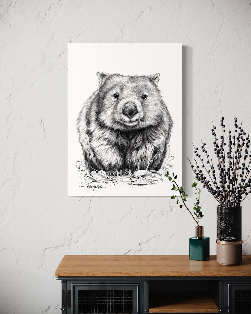 This artwork is more than just a beautiful image; it's a reminder of the importance of conservation and our connection to the natural world. By bringing this endearing wombat into your home, you're not only adding a touch of artistic flair but also fostering a sense of wonder and respect for the incredible diversity of life around us.