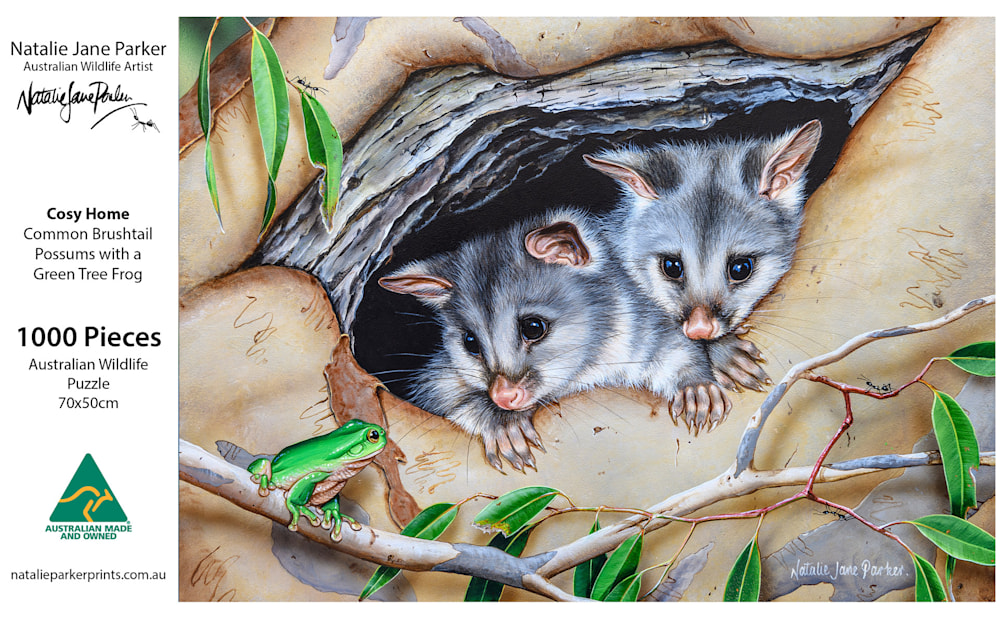 Cosy Home - Common Brushtail Possums with a Green Tree Frog | 1000-piece Jigsaw Puzzle